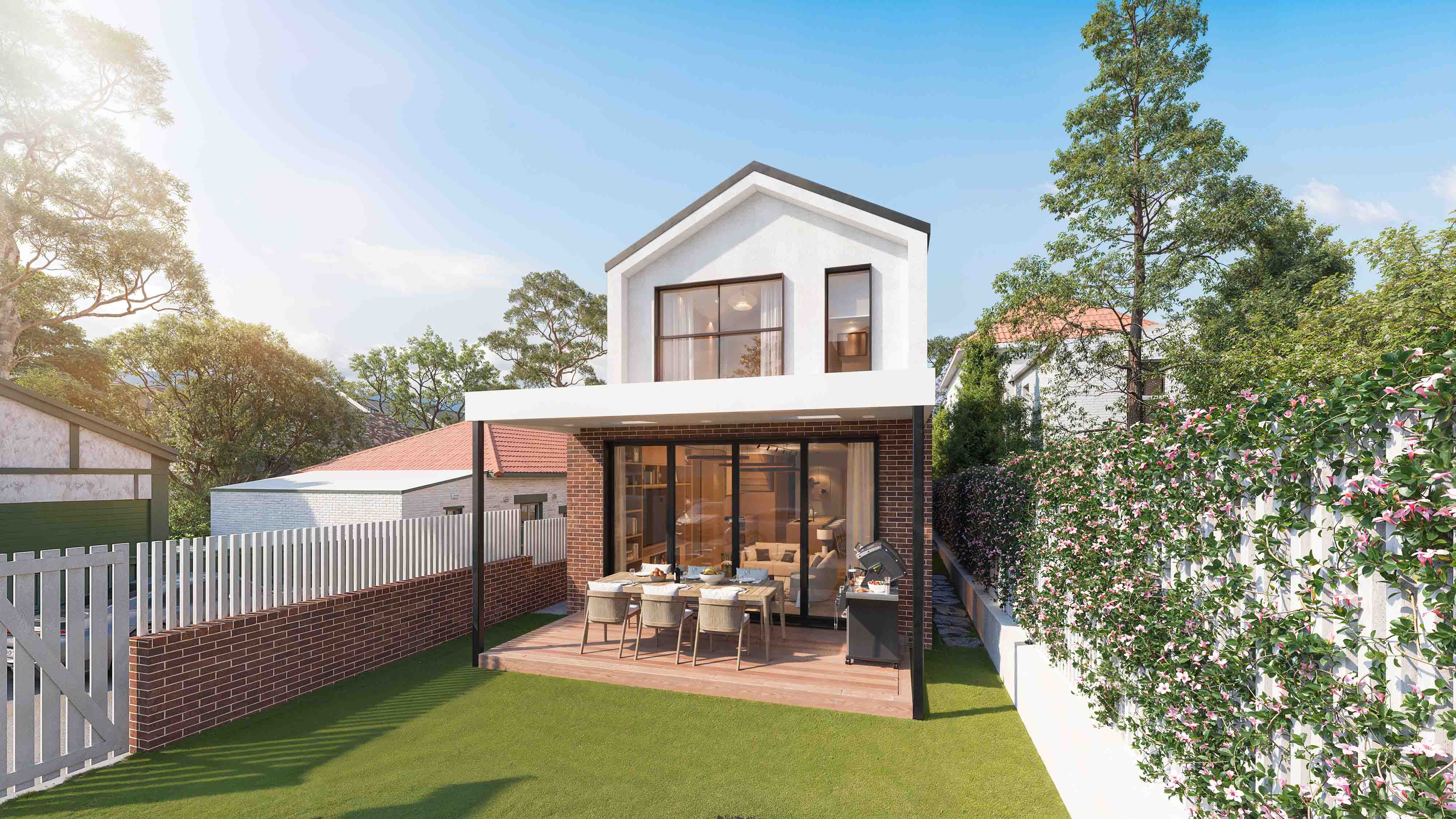The existing building structure was retained to minimise costs and environmental impact, while an elegant second-storey extension was added to elevate the property's value. Key design decisions, such as excavating to achieve an impressively high-ceilinged living room that opens seamlessly to the outdoor deck, brought a sense of grandeur and luxury to the project, addressing the developer’s desire for a sophisticated lifestyle offering that attracts discerning buyers.