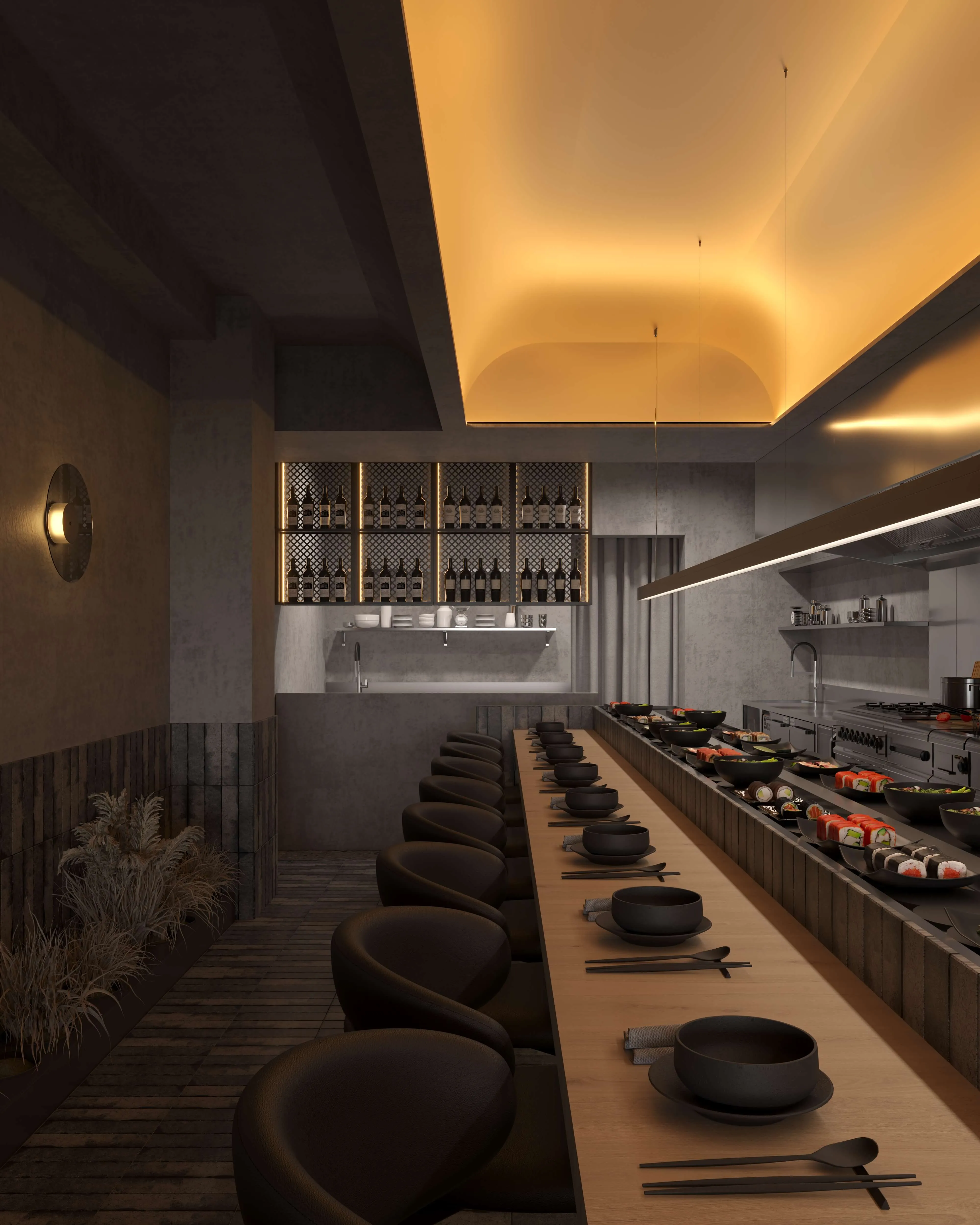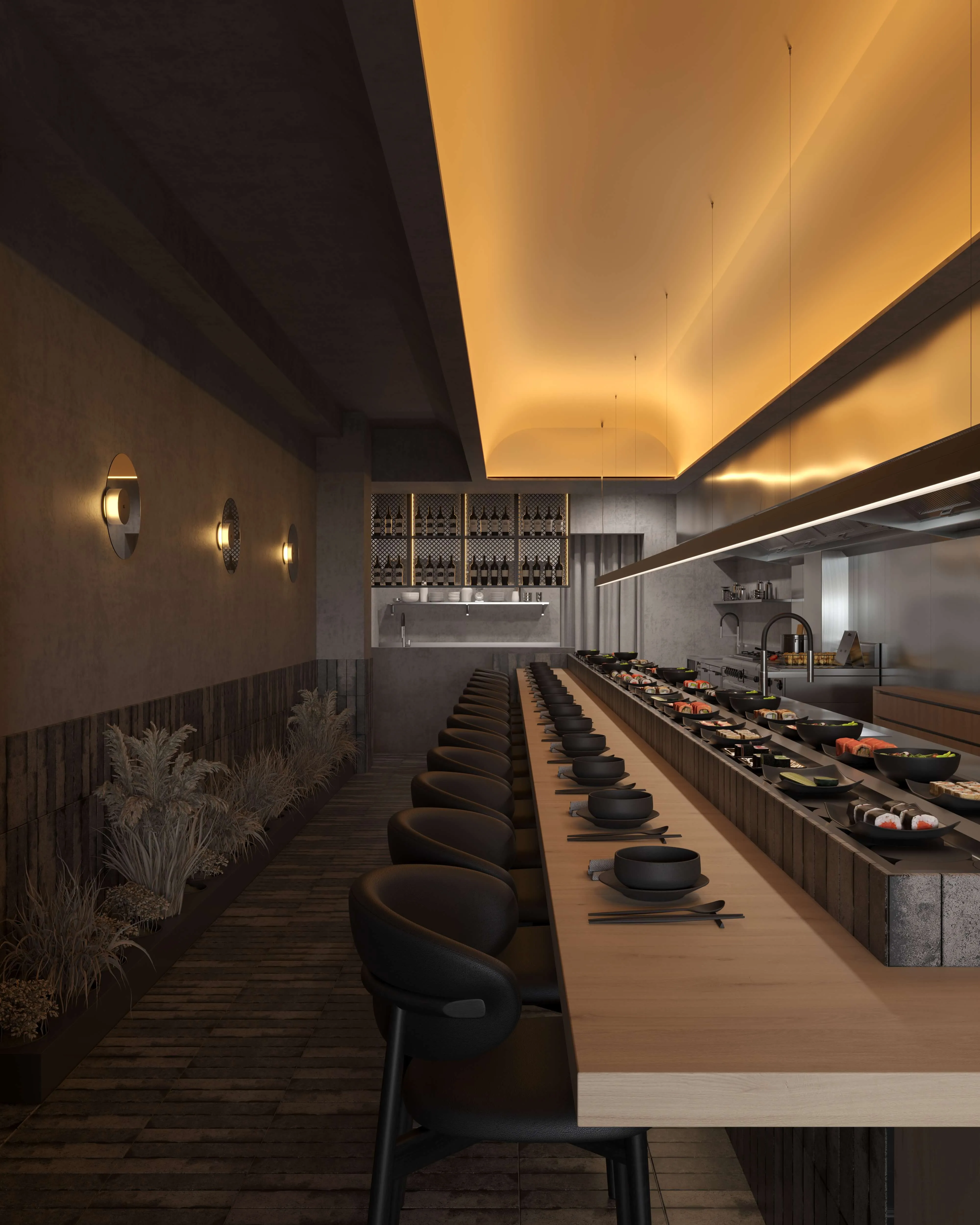 When we first met with the client, they expressed their desire for a sleek and stylish interior design that exuded luxury and sophistication, while also being laid-back and inviting. We listened carefully to their vision and understood that the key to creating the ideal sushi restaurant was to capture the essence of Japanese culture while incorporating contemporary design elements. We took the client through our discovery process, where we worked to understand their tastes, preferences, and aspirations for the space.